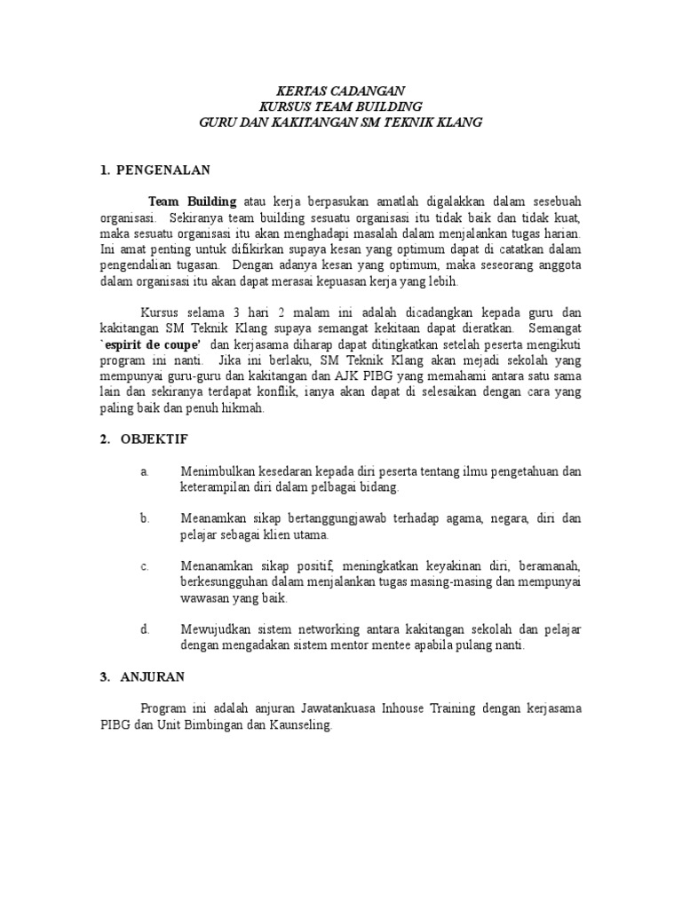 The results a team can achieve will always exceed the results of a single person! Kertas kerja team building smk tun hussein onn norlida mohd mahudin 1. Team building is a management technique used for improving the efficiency and performance of the workgroups through various activities. 0.tujuankertas kerja ini ditulis bertujuan untuk memohon peruntukan dari related posts to contoh kertas kerja untuk team building contoh kertas kerja untuk team building 2017 12 30t13:08:00 08:00 rating: Artikel ini membahas lengkap kertas kerja audit dari pengarsipan kepemilikan & kerahasiaan susunan metode indeks jenis syarat isi tujuan pengertian.