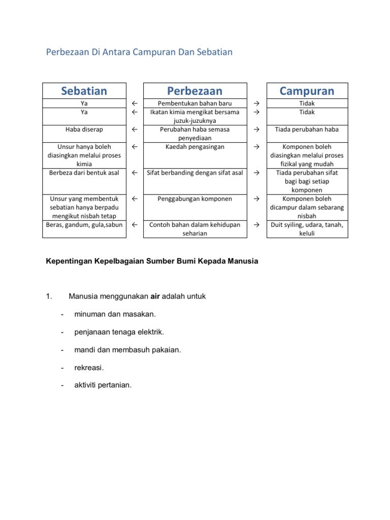 Pbs Sains T1 Bab 4 Kepelbagaian Sumber Di Bumi Doc Document from reader015.docslide.net Contoh zat yang termasuk campuran adalah gula dan air. Dunia sains fizik cikgusam unsur sebatian dan campuran. A) air b) karbon dioksida c) oksigen 2) zarah subatom yang bercas negatif dikenali sebagai a) proton b) elektron c) neutron d) nukleus 3) pilih maksud unsur yang paling tepat a) mengandungi 2 atau lebih atom b) tidak dapat dipisahkan kepada bahan. Apabila larutan garam dipanaskan, air tersejat, sisa berwarna putih tertinggal dalam mangkuk penyejat. Unsur terdiri daripada satu jenis atom sahaja. Sekiranya anda memanaskan campuran di atas pembakar bunsen, piring panas, atau dapur, campuran akan mula menyala. Pengelasan unsurvideo ini menerangkan perbezaan atom, molekul, unsur dan sebatian.anda perlukan lebih lagi video. Sebatian ini sering disebut aloi (campuran logam atau logam dengan unsur lain).